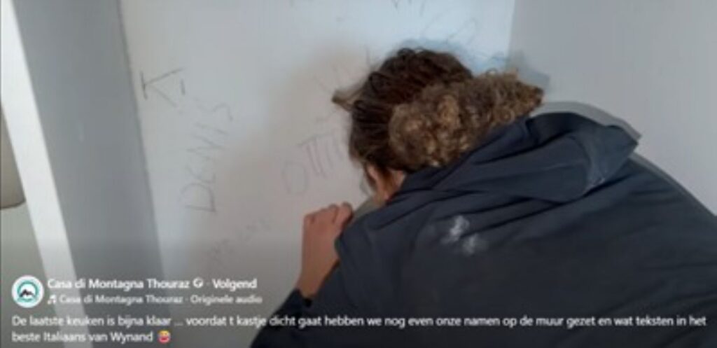 Sinds drie dagen is ons uitzicht de caravan! We leven in een prachtig appartement in Casa di Montagna Thouraz. Denis heeft de stroom bij ons aangesloten